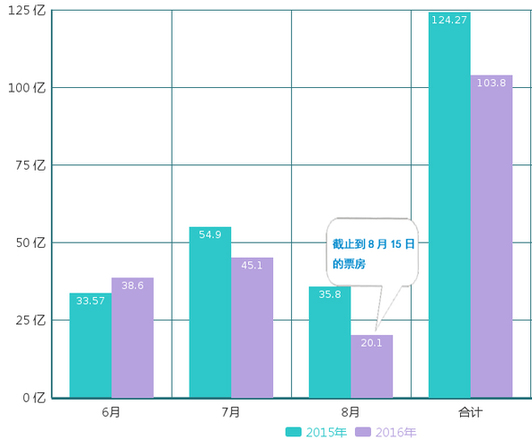 而8月最後剩下兩周時間里,除了《冰川世紀5》與《諜影重重5》,也難看到太亮眼、足以勝任“票房臺柱”的作品,能否追回7月落後的近10億票房,真的要打個問號。