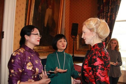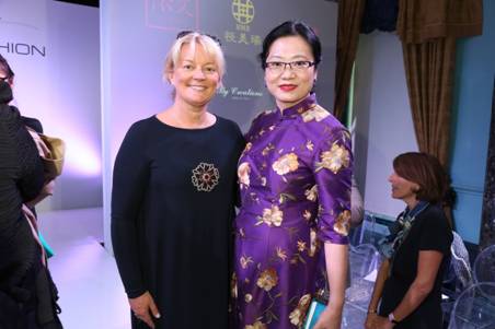 夏華女士與身穿EVE CINA的老朋友英國董事協會主席、英國貿易與投資總署商務大使芭芭拉·賈琦女士重逢