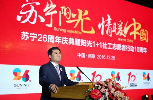 張近東在慶典開幕致辭中表示:“公益,既是蘇寧回饋社會的方式,更是蘇寧持續壯大的動力源泉。”蔣宏坤高度評價了蘇寧的公益事業,他表示,“2006年一直延續至今的陽光1+1社工志願者行動,是蘇寧為全社會打造的社會志願服務標桿形象。”當天儀式上,蘇寧除了向社會各界宣布了蘇寧2017年的公益行動計劃,還正式宣布成立“蘇寧公益基金會”。