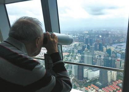 牟其中站在上海環球金融中心俯瞰上海。
