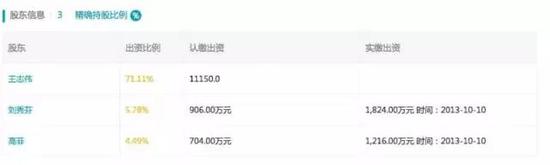 公開可查的工商注冊信息顯示,王志偉和其妻子劉秀芬分列公司第一、二大股東。