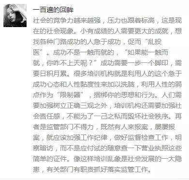 @飄:生活、事業、情感等遇到困難無法發泄和解決,看到這樣的培訓機構,以為找到新出路,結果越陷越深。除了完善法律,打擊非法組織,還應該重視人們心理健康教育,加強心理咨詢,給人們正確合理的引導。