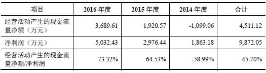 經營活動產生的現金流量凈額和凈利潤比較情況(來源:招股書)
