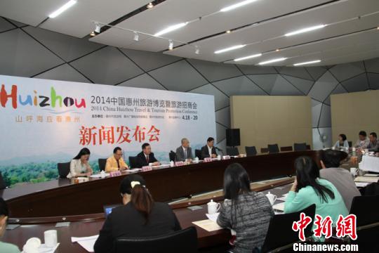 圖為2014中國惠州旅遊博覽會暨旅遊招商會新聞發布會現場。 汪玉虎 攝