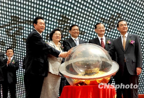 開街儀式上,中共中央政治局委員、北京市委書記劉淇,全國政協副主席、臺盟中央主席林文漪,中臺辦、國臺辦主任王毅,連戰夫婦、臺灣霧峰林家董事長林芳英等臺灣各界人士到場祝賀。(記者 路梅)