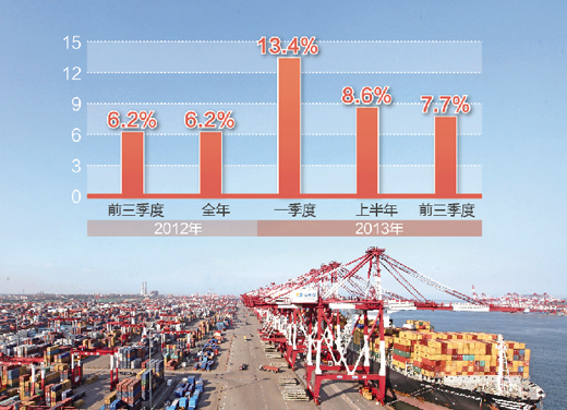 本報北京10月12日電(記者杜海濤)海關總署新聞發言人、綜合統計司司長鄭躍聲12日在國新辦發布會上透露,今年前三季度,我國進出口總值19.07萬億元人民幣,扣除匯率因素同比增長7.7%。