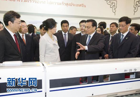新華社照片,曼谷,2013年10月12日 李克強與泰國總理英拉共同出席中國高鐵展 10月12日,國務院總理李克強與泰國總理英拉在曼谷共同出席中國高速鐵路展開幕式。 新華社記者 黃敬文 攝
