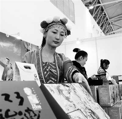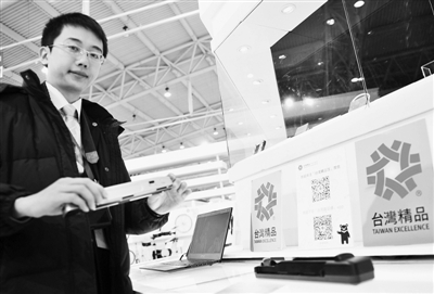 圖① 在近日舉行的2013臺灣名品博覽會上,臺灣精品館的工作人員在演示一款智能掃碼器。