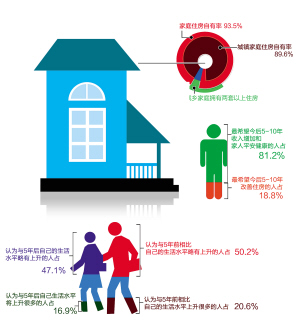 新快報訊 中國社會科學院25日發布的《當代中國調查報告叢書:中國社會和諧穩定跟蹤調查研究》顯示,目前家庭住房自有率為93.5%,較2011年提高了1.9個百分點;其中城鎮家庭住房自有率為89.6%,較2011年提高了1.7個百分點。18.6%的城鄉家庭擁有兩套以上住房。