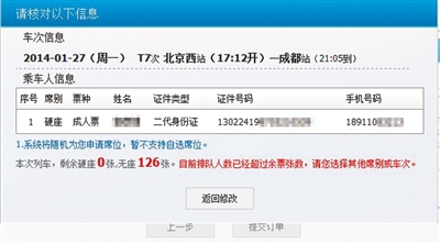 昨天一早,新京報記者分別通過網絡、電話、手機客戶端、窗口、代售點五種渠道,購買1月27日北京西至成都的火車票。其中網絡、手機客戶端的購票過程可以說是“過五關、斬六將”,每個環節都有可能陷入“加載中”。電話訂票則相對較容易,打不通北京的訂票電話時,可加撥外地區號。