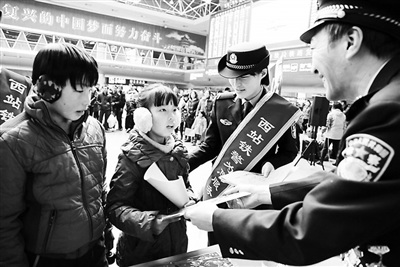 今年春運,北京鐵路警方精心制作了《首都鐵警便民服務手冊》,從購票、進站、安檢、候車、檢票、上車、下車到出站等諸多環節,都為廣大旅客撰寫了安全防范措施。此外,警方還自編了通俗易懂的防扒順口溜,發放給過往旅客,並送上新年的大紅“福”字、卡通馬和中國結等新年禮物。