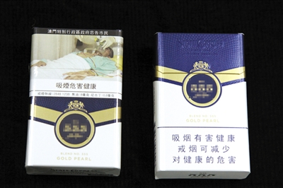 某品牌香煙在澳門的外包裝印有搶救吸煙患者的圖片(左)。