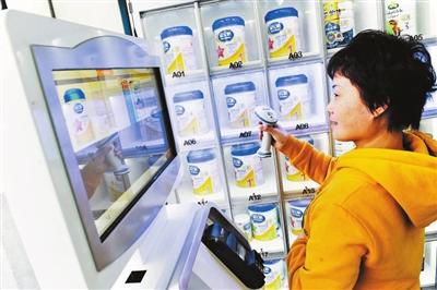 在藥店的奶粉專區,通常設置有4至5個約兩米左右高的半透明玻璃櫃,每個櫃子分成6行5列30個小格子,每個小格子里裝有一罐奶粉,格子門外安有自動彈簧門。消費者如想購買某一品牌的奶粉,需要從櫃子旁邊的自動售貨終端機上取下電子掃碼槍,來到對應的格子外,對奶粉罐上的二維碼進行掃描,然後再回到終端機上了解奶粉的生產日期、保質期、產地、凈含量、價格等具體信息。確定購買後,消費者需要在終端機屏幕上點擊確認結算,與地鐵內的售貨機不同,藥店的奶粉售貨機目前並不接納現金收費,只可通過POS機刷卡支付或微信賬號進行支付。支付完成後,選中的奶粉櫃門將自動彈開,消費者可自行取貨。“來藥店的消費者大多是中老年人,他們中很多人既不會操作掃碼槍,也不熟悉使用觸屏購買,自助刷卡時更是經常出錯。”一位藥店的工作人員告訴記者。