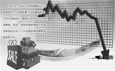 多年來,日本政府一直對提高消費稅一事“噤若寒蟬”,曾有幾屆內閣因提高消費稅導致經濟迅速萎縮,因而失去了民意支持。目前,日本財政虧空嚴重,債臺高築,已經到了難以為繼的地步,增稅是日本政府解決財政困境的唯一可行辦法。提高消費稅可以起到立竿見影的效果。據統計,4月提高消費稅後,日本財政收入當年就可以增加6萬億日元。去年10月,安倍內閣不顧日本輿論和民意的質疑和反對,斷然宣布提高消費稅,這為日本經濟的發展平添了風險。而且,安倍內閣的增稅計劃並沒有到此止步,計劃明年將消費稅率提高至10%,但這要在今年10月份根據經濟情況再次做出決定。有專家稱,只要財政赤字不解決,提高消費稅將可能是以後歷屆內閣優先選擇的路徑。