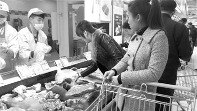2013年全年,我國豬肉進口量58.4萬噸,同比增加11.7%,進口增速過快也從一定程度上影響了豬肉價格。業內人士分析,豬價下降與生豬供應量偏多和市場銷量減少有關。去年下半年,生豬價格持續回升,養殖戶普遍看好年末價格有可能上漲,積極補欄,造成年末集中出欄,供應量大幅提高。另一方面,豬肉集中採購量大幅下降,餐飲、酒店等行業需求不旺,直接影響了豬肉消費。屠宰加工企業也在下調生豬收購價,使生豬價格下滑。而零售量也隨著市民飲食習慣和消費方式的轉變有所減少。(記者 梁庚 文/攝)