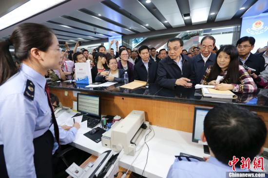 李克強22日在福建自貿區廈門片區象嶼綜合服務大廳了解簡政放權和商事制度改革等情況。劉震 攝