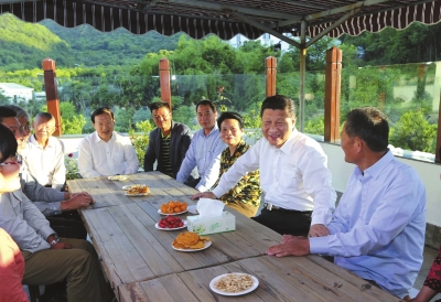 夕陽灑進老袁家的庭院,習近平和村民們圍坐在一起促膝交談。聽說這里正在規劃建設綠色生態旅遊景區,習近平說:“這個好,在這里待著還真不想走了。我在浙江工作時,‘綠水青山就是金山銀山’這話是大實話,現在越來越多的人理解了這個觀點,這就是科學發展、可持續發展,我們就要奔著這個做。”
