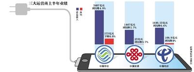 截至21日晚,三大運營商半年報出齊。聯通21日公布的業績顯示,上半年營收1446.85億元,同比下降5.7%。此前中國移動、中國電信也發了半年報,中國移動上半年營收3407億元,同比增長4.9%。中國電信上半年營收凈利雙降,營業收入達到1649.53億元,同比微降0.6%。