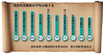 新京報訊(記者陳楊)清華大學中國與世界經濟研究中心10月27日發布國內首份消費金融研究報告《中國消費信貸市場研究》顯示,不同消費信貸商之間,貸款年限、借款利率、救助機制等方面差異明顯,受是否接受監管的影響巨大。在逾期罰款措施告知、短信提醒、客服中心等方面的服務,商業銀行和消費金融公司要遠遠優于互聯網金融企業,而規范性表現最差的則是小貸公司和中介公司。