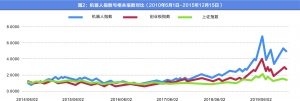 2013年~2015年,中國機器人產業發展迅速。相關數據顯示,2015年上半年,國產機器人銷售11275臺,銷量同比增長76.8%,機器人產業的銷量增速形勢喜人。根據IFR統計,2009年至2014年,中國工業機器人市場銷量復合增長率達到58.9%。根據相關報告,2012年至2016年,全球服務機器人銷量復合增速已高達19%;與之相比,全球工業機器人2013年至2016年復合增長率約為6%。由此足見中國機器人銷量增速遠遠高于世界機器人銷量增速。