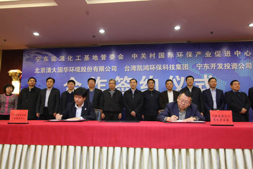 中關村國際環保產業促進中心主任徐雲與寧東能源化工基地管委會代表簽約