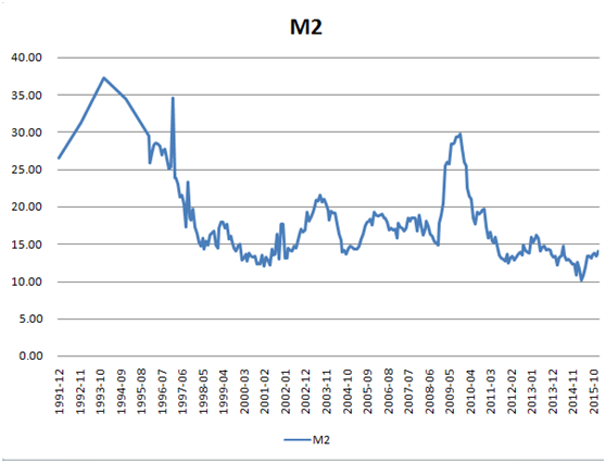 彭博社近期的一篇報道指出,中國2015年每1元的信貸擴張,只能為中國的GDP帶來0.27元的增長,創2009年以來的最低水平。而在2011年時,每1元的信貸擴張對應0.59元的GDP增長。