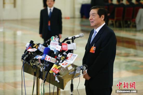3月9日,十二屆全國人大四次會議在北京人民大會堂舉行第二次全體會議。圖為海關總署署長于廣洲接受記者採訪。中新社記者 富田 攝