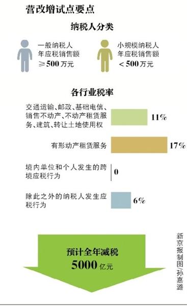據了解,此次新增試點的建築業、房地產業、金融業和生活服務業等四大行業涉及納稅人1100萬戶左右,比前期試點的590多萬戶增加近一倍。