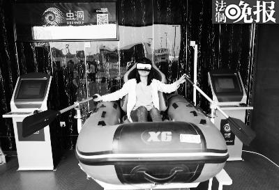 觀眾體驗蟲洞VR虛擬現實在體驗區設置的“漂流船” 攝/記者吳海浪