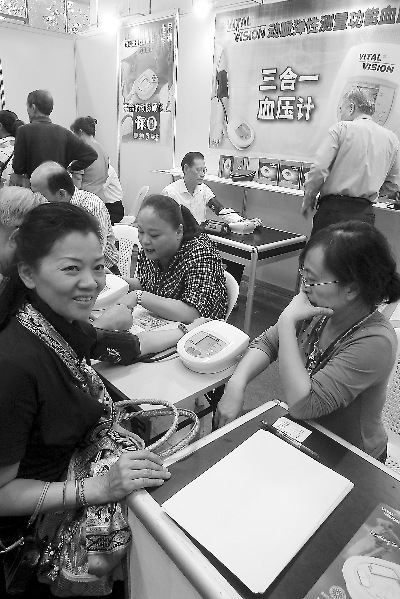 另外,醫療器械方面臺灣得康醫療器材股份有限公司生產帶來的周邊血管檢測儀不但可以測量血壓,還可以同時測量出動脈硬化指數,一臺售價500元,現場搶購者頗多(左圖)。