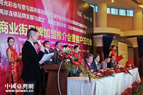 中國臺灣網12月12日奎屯消息 12月9日,由臺灣光彩促進會與新疆奎屯溫商集團共同舉辦的兩岸連鎖品牌商業論壇在新疆奎屯市隆重舉行,這是兩岸服務貿易協議簽訂後,臺灣連鎖品牌首次抱團進軍西北邊疆城市。