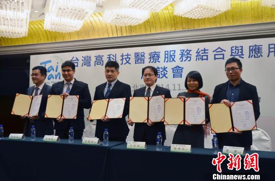 臺灣名品博覽會“臺灣高科技與醫療服務結合與應用”記者會12日下午在北京舉行。在記者會上,兩家臺灣醫療院所分別與兩家北京相關公司簽署合作備忘錄或舉行簽約儀式,標志著臺灣醫療業者未來會和北京當地醫療業者展開