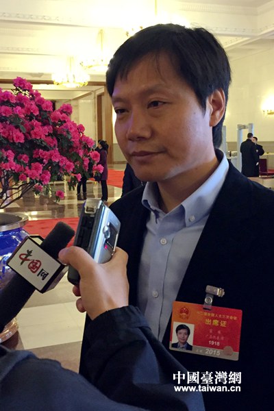 中國臺灣網3月9日北京消息 全國人大代表、小米科技CEO雷軍表示,臺灣青年創業,方向應該定位在兩岸經濟一體化的市場之中,才有更多機遇。
