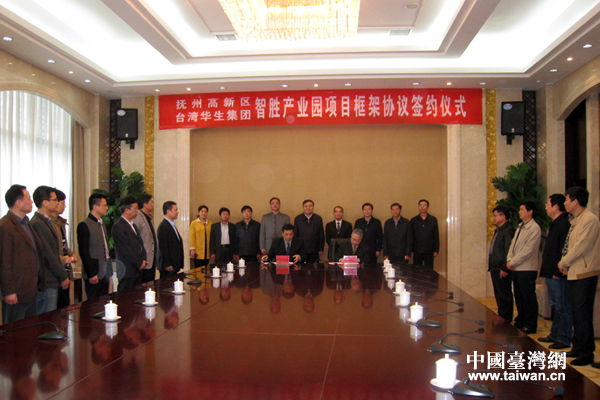 撫州高新區和臺灣華生集團智勝產業園項目框架協議簽約儀式現場。(圖片來源:江西臺辦)