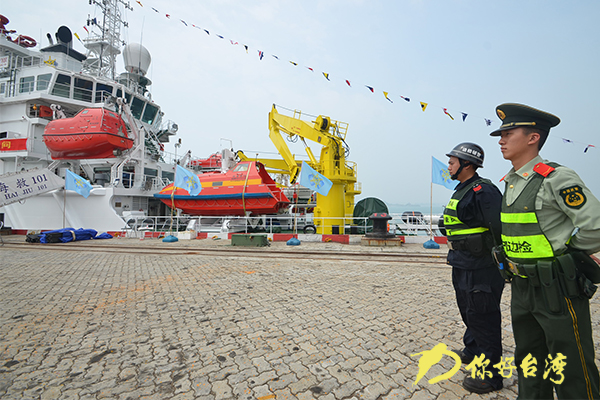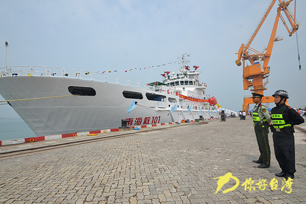 5月7日,大陸打撈救助船“南海救101”輪在福建莆田邊防檢查站的驗放監護下,順利駛離福建莆田赴臺灣進行九天訪問。(你好臺灣網發 王斌斌 攝)