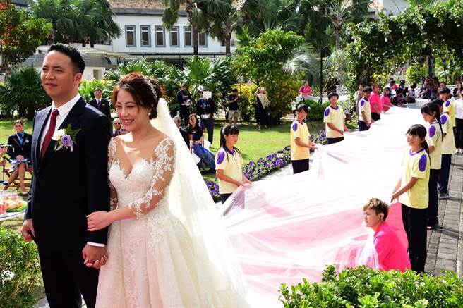父親鄭越才為愛女訂制了一幅6公里長的頭紗,並挑戰世界最長新娘頭紗紀錄。