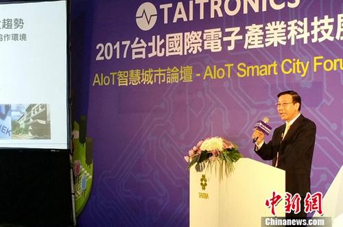 10月11日,2017臺北國際電子產業科技展智慧城市論壇在臺北舉行。中國機電產品進出口商會臺北辦事處主任李榮民表示“對于大陸智慧城市建設衍生出的龐大市場,毫無疑問臺商要踴躍進場。”中新社記者 邢利宇 攝