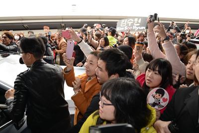 金秀賢座車離開機場路上,有多輛包車追星的粉絲、媒體尾隨,從機場緊追到飯店。媒體及粉絲們的跟監讓金秀賢大嘆吃不消,昨天晚間他前往臺北101大樓的鼎泰豐用餐,被媒體及粉絲的車輛逼在101大樓停車場繞圈圈。但最後總算甩開媒體,順利吃到鼎泰豐的小籠包,餐廳工作人員說,金秀賢吃了小籠包及牛肉湯,感覺非常滿足。