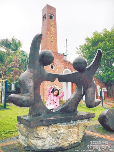 一位自由行陸客在集集火車站前留下美麗倩影。(取自微博@臺灣自由行)