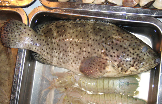石斑魚(Epinephelussp.)屬鱸形目,體長橢圓形稍側扁。口大,具輔上頜骨,牙細尖,有的擴大成犬牙。體被小櫛鱗,有時常埋于皮下。背鰭和臀鰭棘發達。尾鰭圓形或凹形。體色變異甚多,常呈褐色或紅色,並具條紋和斑點,為暖水性的大中型海產魚類。石斑魚營養豐富,肉質細嫩潔白,類似雞肉,素有“海雞肉”之稱。石斑魚又是一種低脂肪、高蛋白的上等食用魚,被港澳地區推為我國四大名魚之一,是高檔筵席必備之佳肴。石斑魚燒芋艿,原本是嵊泗漁區一道家常菜,如今卻成為享譽海內外的珍貴菜。