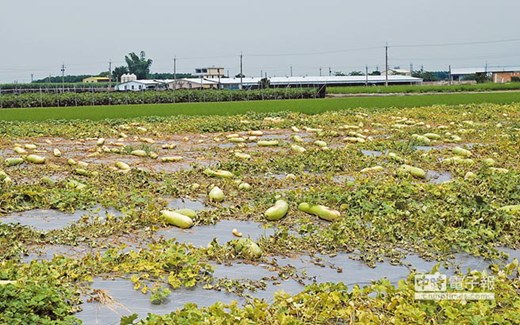 康妮臺風的豪大雨造成彰化縣溪州鄉農民栽種的冬瓜泡水腐爛,無法收成。