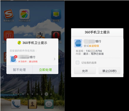 中新網9月9日電 近日,360手機安全中心截獲一款名為“手銀毒王”的手機木馬,該木馬高倣某銀行手機客戶端,誘導用戶填入手機號和銀行卡號等信息,還在後臺偷偷轉發手機短信,木馬作者無需拿到手機用戶的銀行卡就可以遠程盜刷銀行卡。目前,360手機衛士已經對“手銀毒王”木馬實現首家查殺。