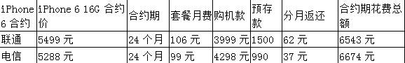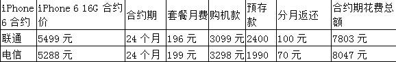 此次,北京聯通制定的iPhone 6/6 Plus主銷合約套餐政策共有三種,分別為存費送機合約、 購機送費合約及合約惠機。其中存費送機、合約惠機合約包價格分別為5499元、6299元、7099元、7999元四種。合約期提供了從12個月到36個月多種選擇,而電信、移動僅提供24個月或36個月的合約,選擇較少。相較而言,聯通合約為用戶提供了更多的選擇,且套餐資費也相對優惠。