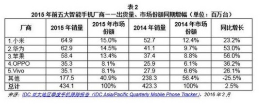 在國內市場方面,IDC也于近日公布了2015年中國智能手機市場的出貨量數據,數據顯示顯示小米在2015年度以6490萬臺的出貨量位居中國智能手機市場第一。