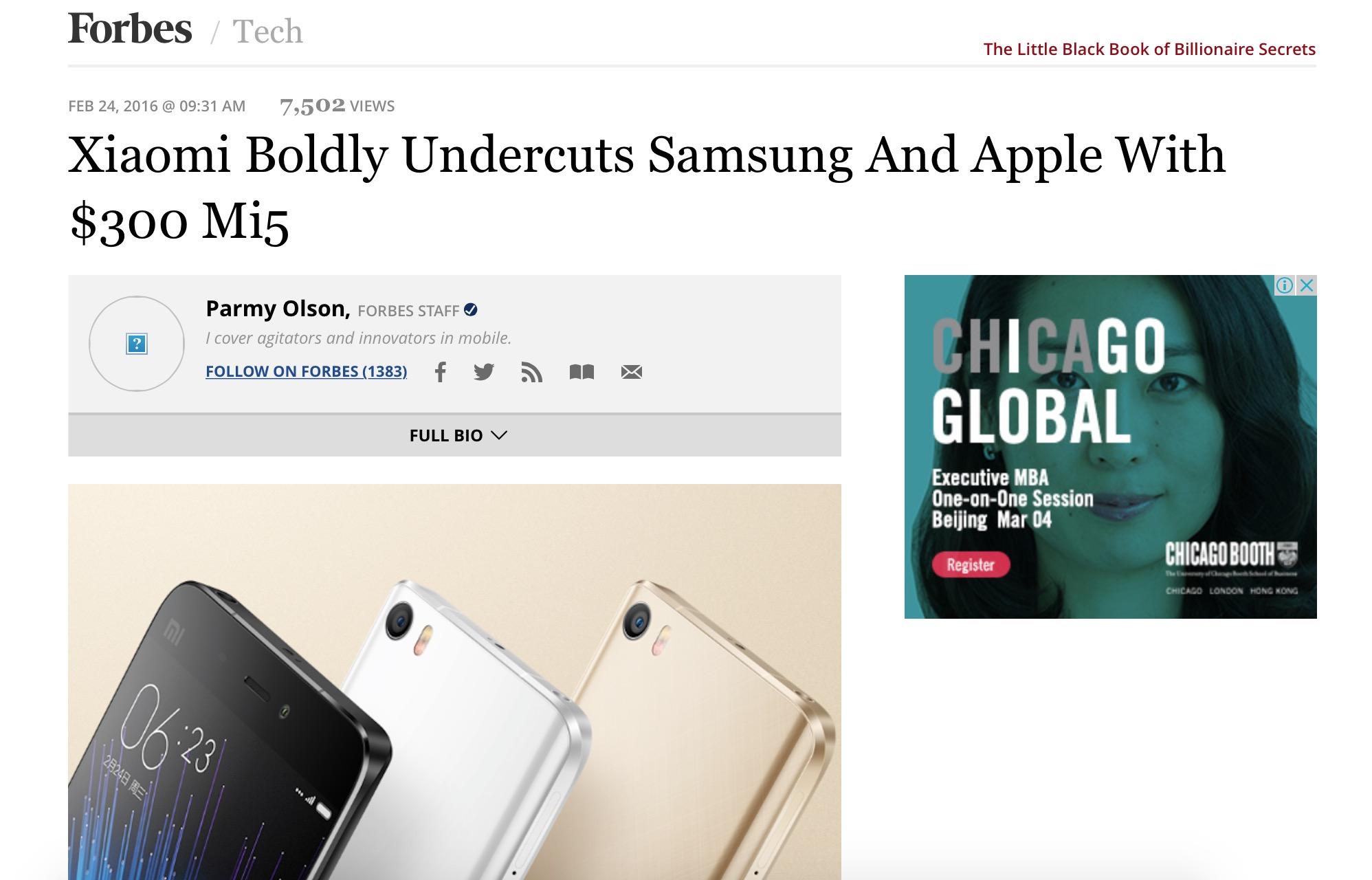 2月26日消息,近日小米發布了旗艦手機小米5,國外媒體福布斯對于小米這款新的旗艦手機進行了報道。