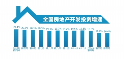 京華時報訊(記者顧夢琳)昨天,國家統計局一口氣發布了工業增長、固定資產投資、社會消費品零售總額等多個宏觀經濟數據。數據顯示,今年前四月,全國固定資產投資同比名義增長17.3%,這一增幅較前三月回落0.3個百分點。其中,全國房地產開發投資同比名義增長16.4%,增速比1-3月份回落0.4個百分點。至此我國房地產投資累計增速已經連續3個月回落。