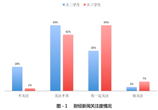 日前一篇發表在《外交評論》的調研報告《財經類學生的財經新聞敏感度與研究興趣》顯示:外交學院國際經濟學院專業,對財經新聞“有一定關注”的選項,大三學生相比大二學生的30%有明顯上升,達到了49%;