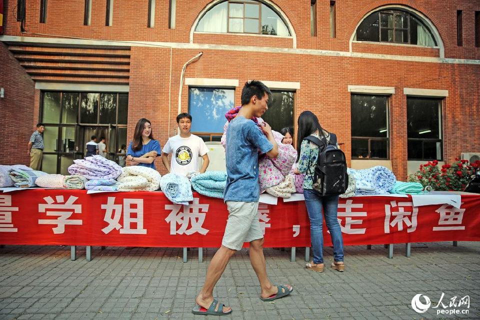 2015年05月31日,清華大學,今年即將畢業回國的韓國女生李惠林正在參與買被子。高價被子的主人是清華大學工藝美術係的一名留學生李惠林,現年大四的她畢業後將要回韓國,于是將大部分不便攜帶的生活物品都賣給了龍一, 除了被子,還有書和化妝品。