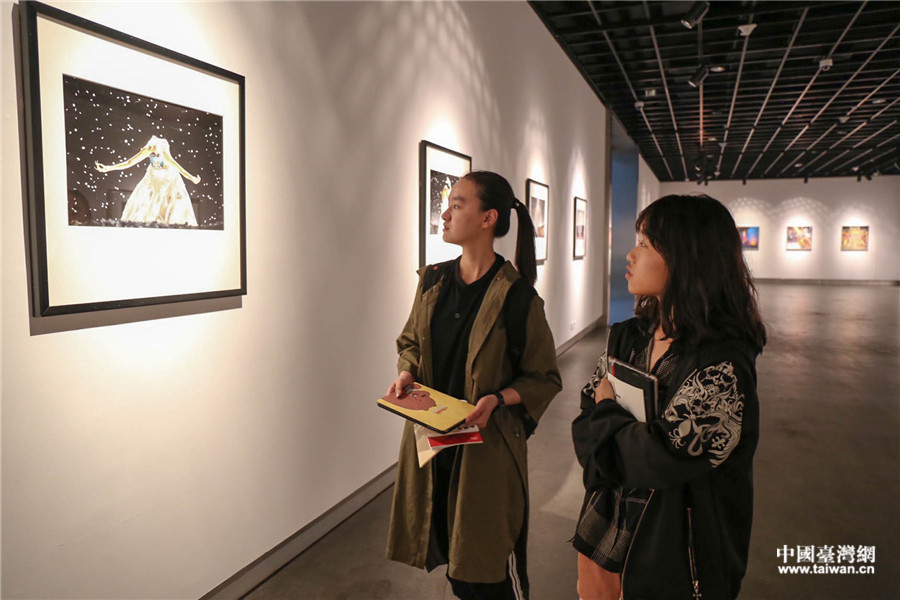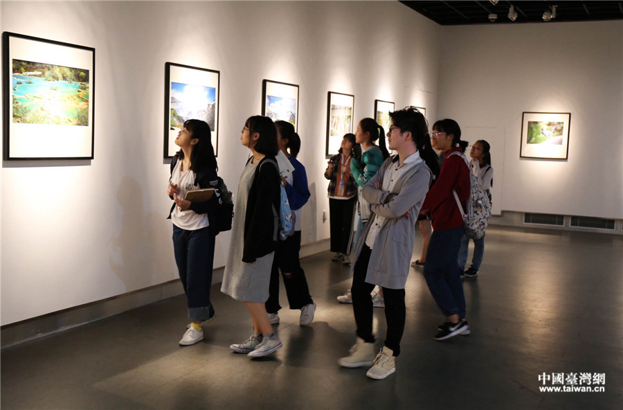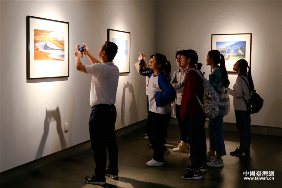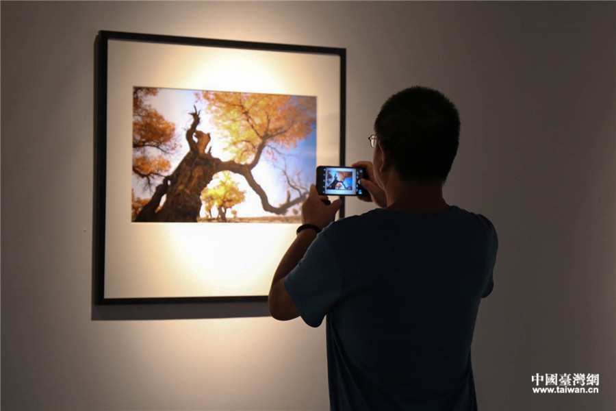 2017浙江·臺灣合作周書畫攝影藝術展現場,觀展者欣賞王雲山的攝影作品。(中國臺灣網 李岳 攝)