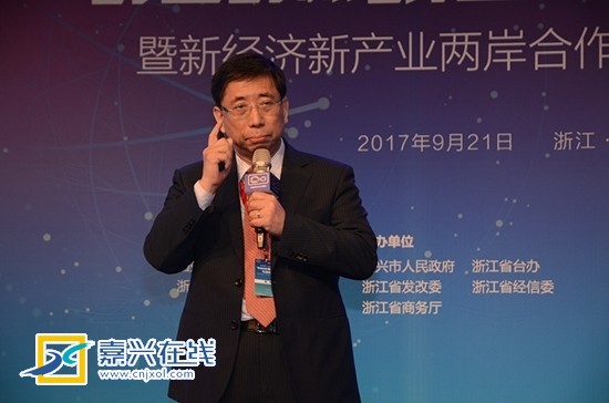 全國臺企聯榮譽會長郭山輝在致辭中分享了自己來嘉興創業的經驗和故事,並期待著嘉興有更快的發展。